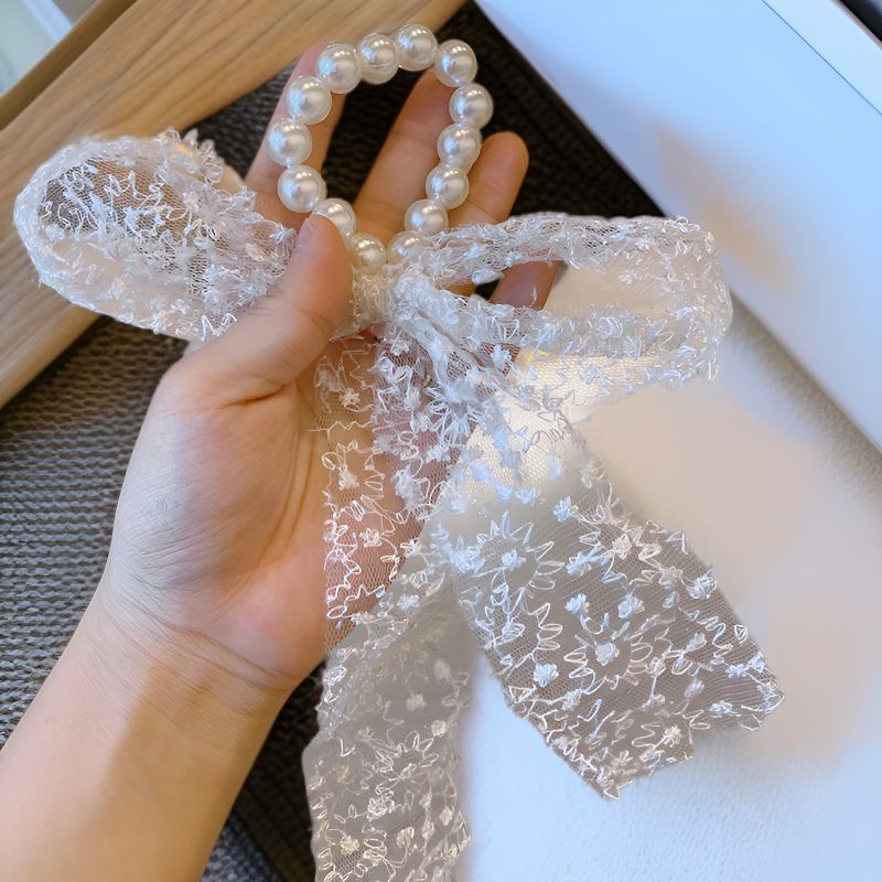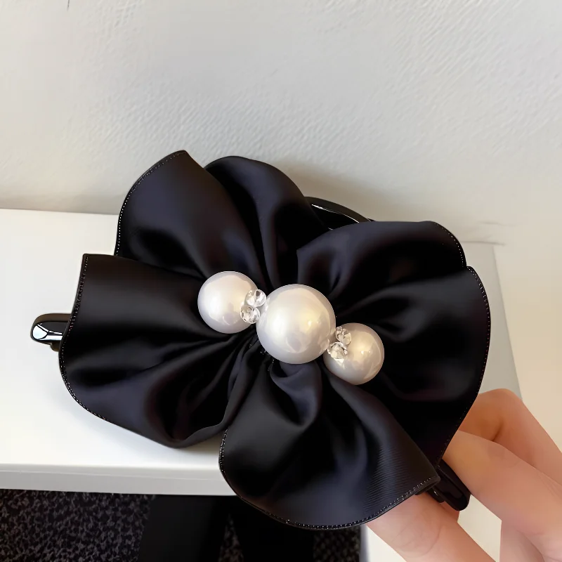 Prosta spinka do włosów z perłą i marszczeniami, dodająca objętości
