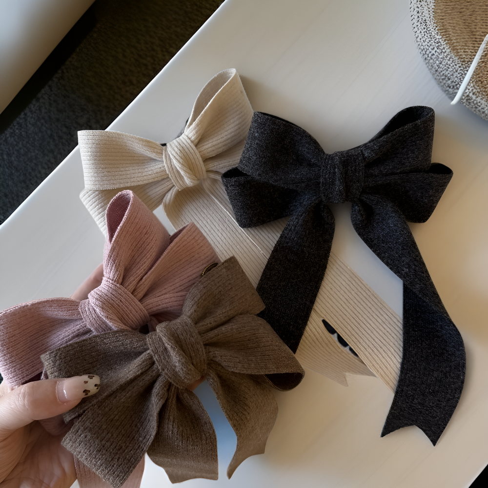 Duża spinka do włosów z kokardką, z miękkiego materiału, w stylu koreańskim, prosta
