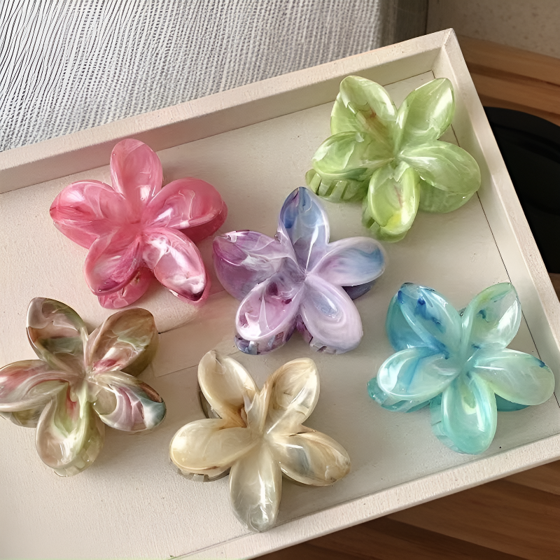 Spinka z kwiatem bauhinii i plumerii, marmurkowy wzór, słodki i stylowy dodatek na tył głowy