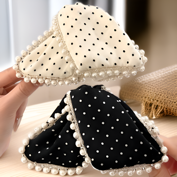 Elegancka trójkątna spinka z perłami, koronką i kropkami